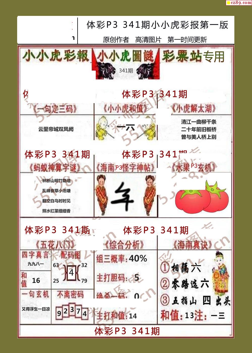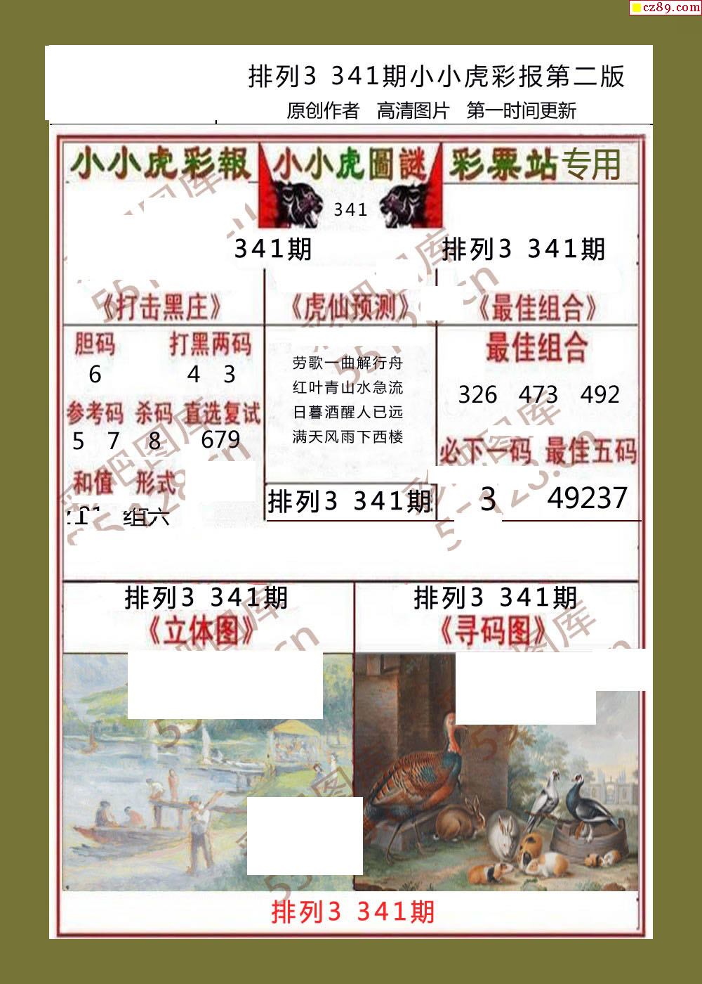 小小虎彩报341期体彩p3图谜