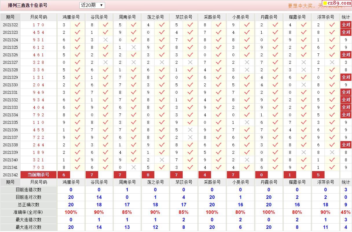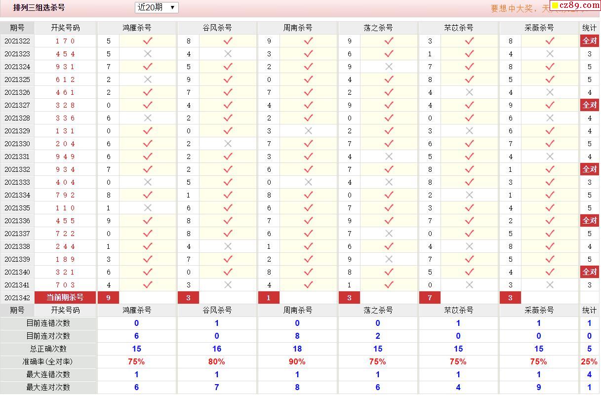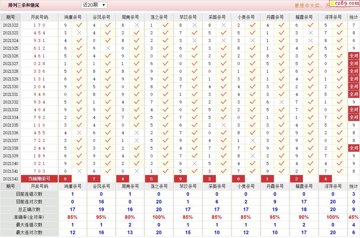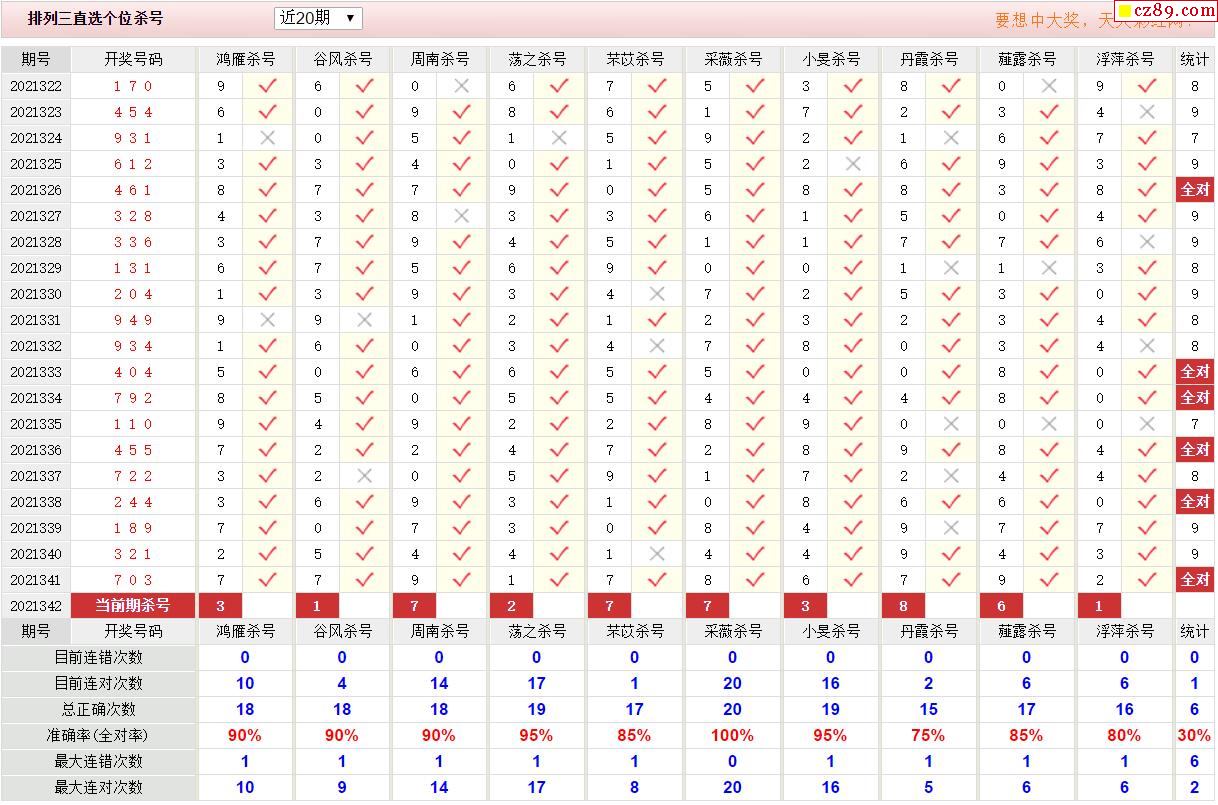 342期彩票专家体彩P3杀号推荐图表
