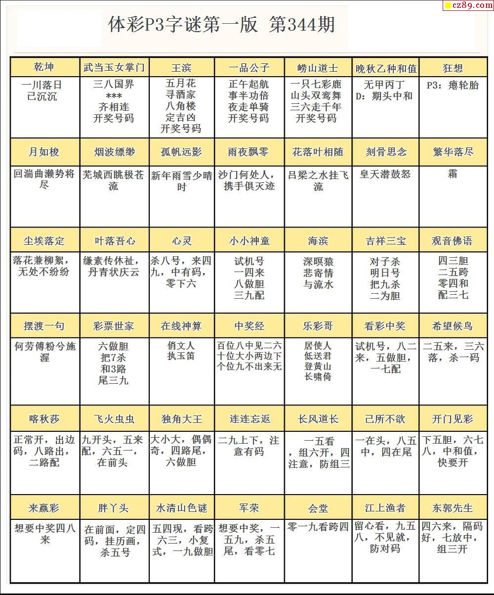 牛彩版体彩P3字谜彩报图21年344期打印版