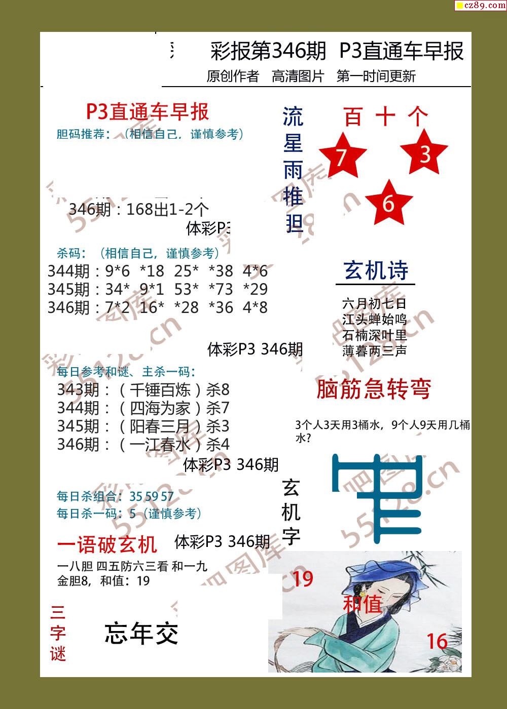 2026年035期牛彩网体彩P3画迷图谜汇总分享