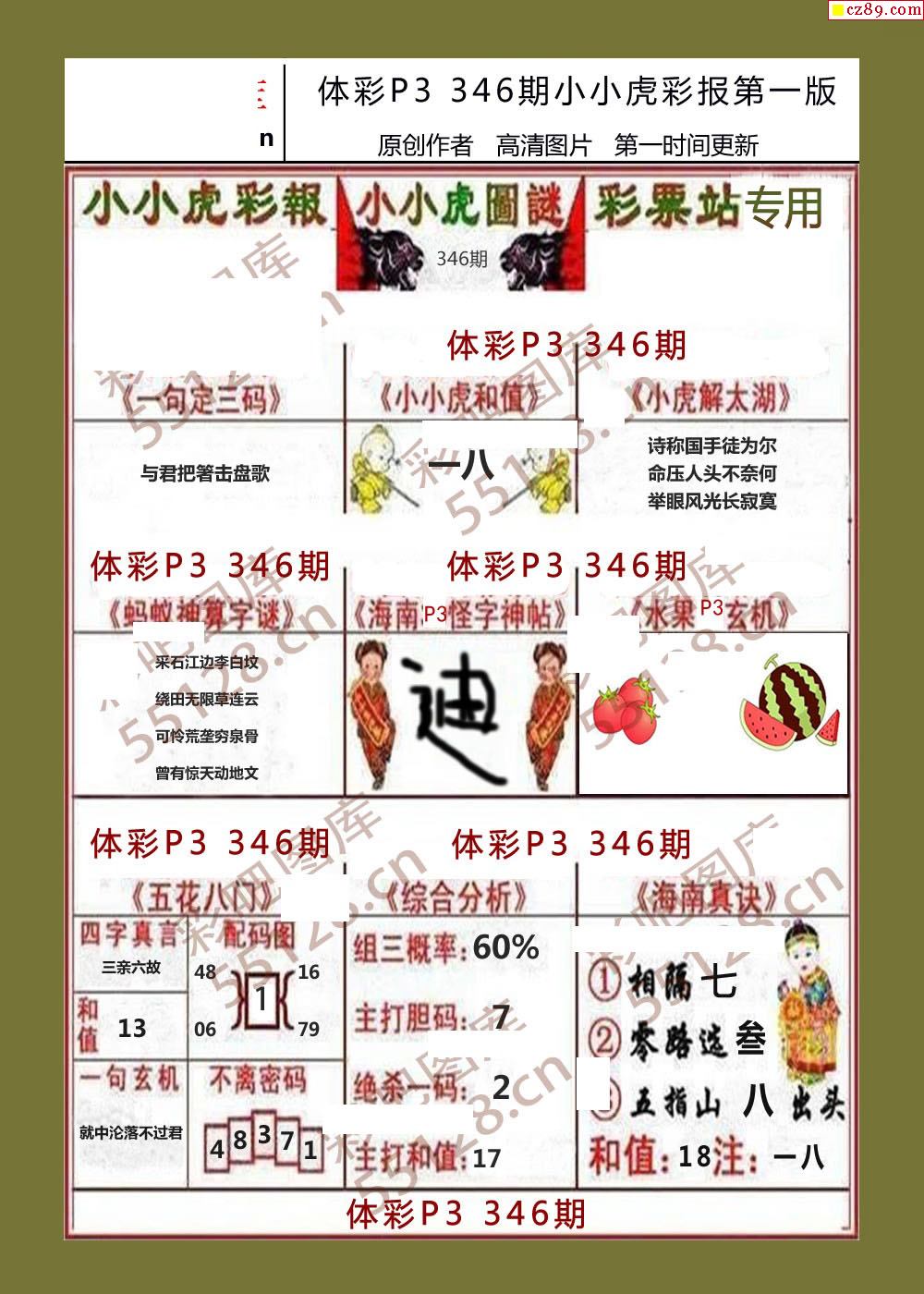 2026年035期牛彩网体彩P3画迷图谜汇总分享