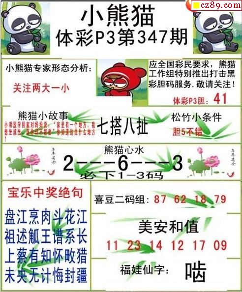 小熊猫2025347期体彩P3图谜