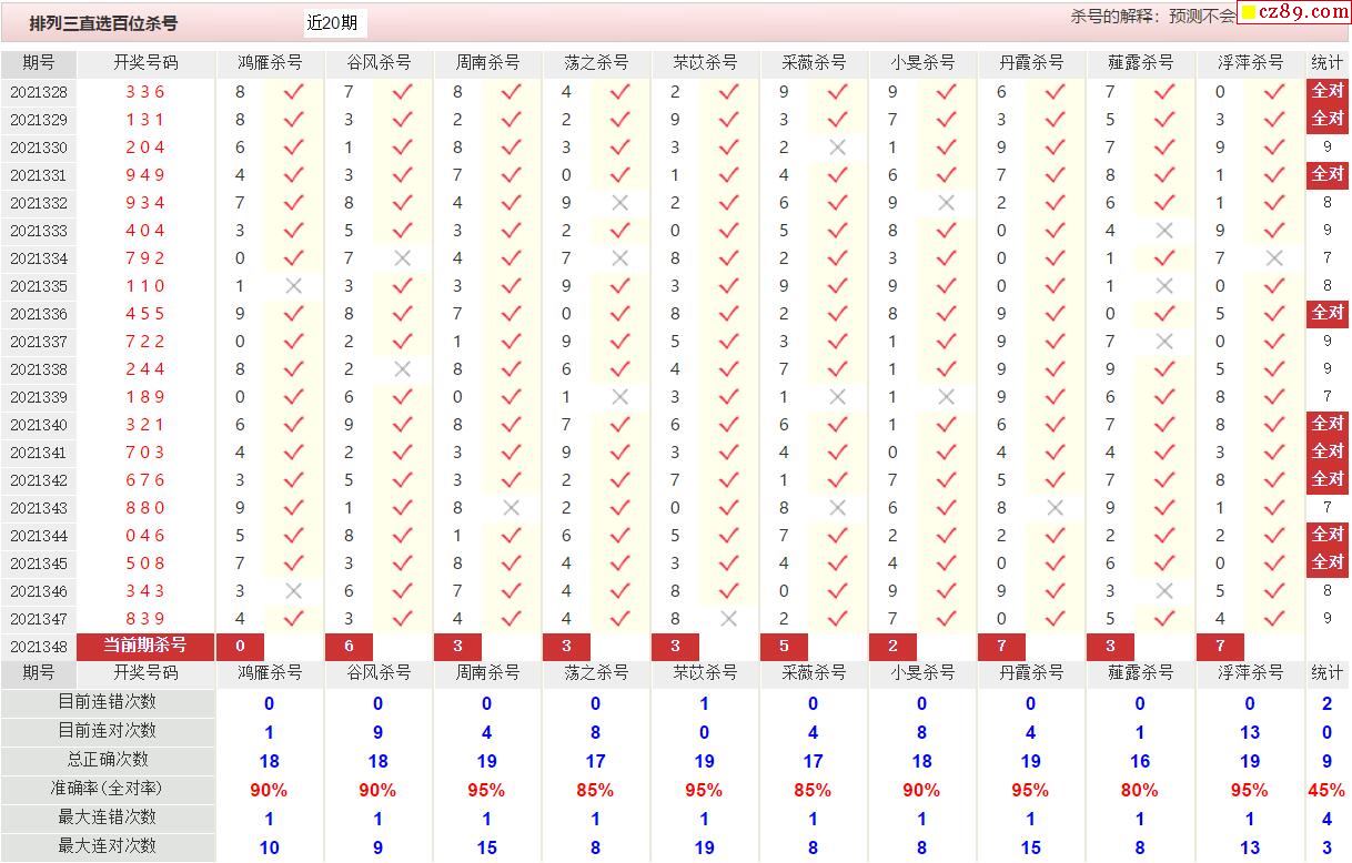 25年345期彩宝贝专家体彩P3杀号定码图表