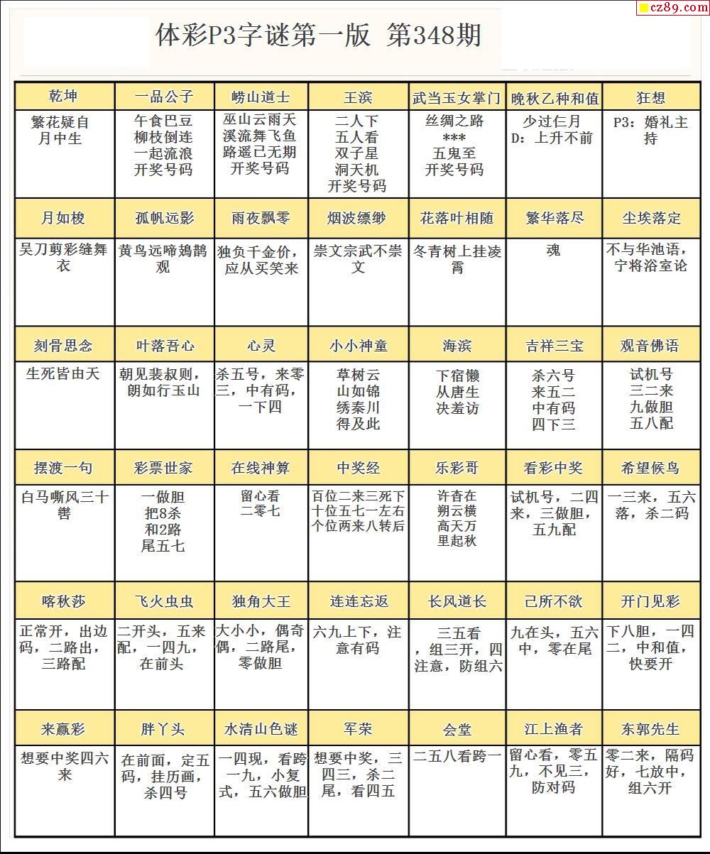 牛彩版体彩P3字谜彩报图21年348期打印版