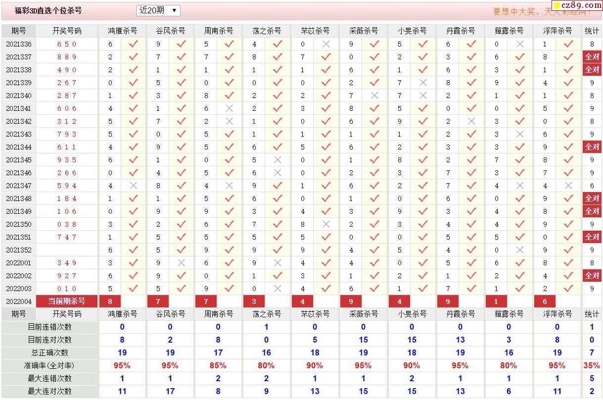 004期彩票专家福彩3D定位杀胆推荐图表