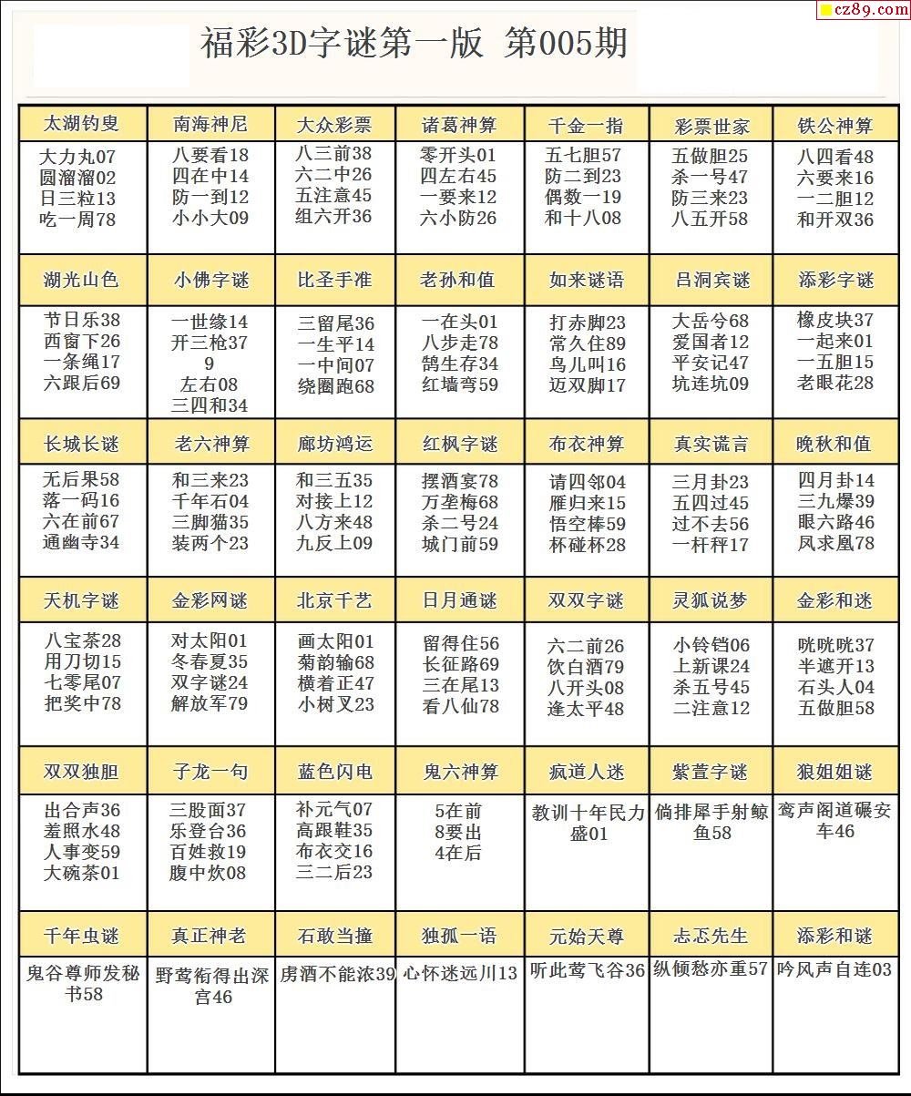 2023年藏机图005期正版福彩3D藏机图诗汇总