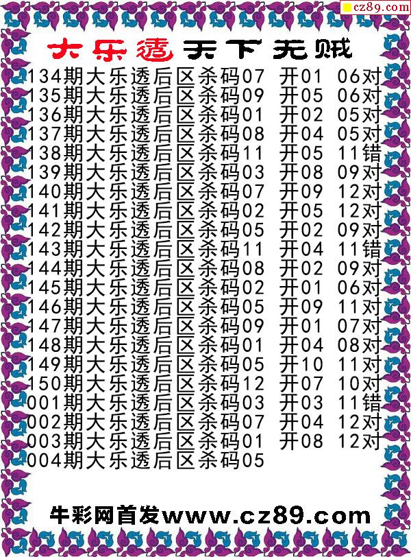 大乐透013期牛彩特邀专家前区后区杀号定胆图表