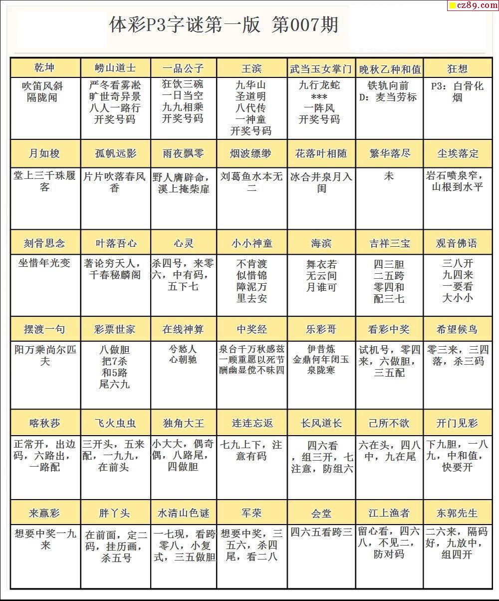 牛彩版体彩P3字谜彩报图22年007期打印版