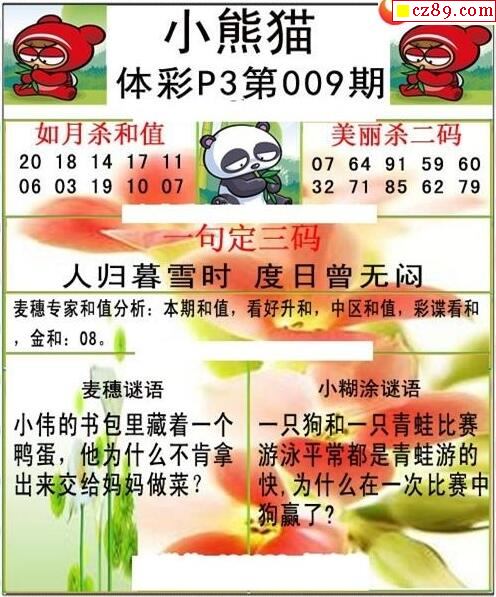 小熊猫2022009期体彩P3图谜