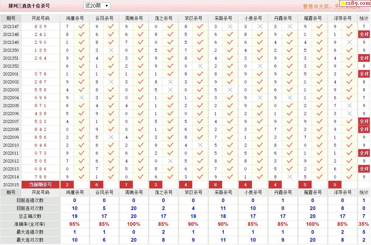 052期彩票专家体彩P5杀号推荐图表