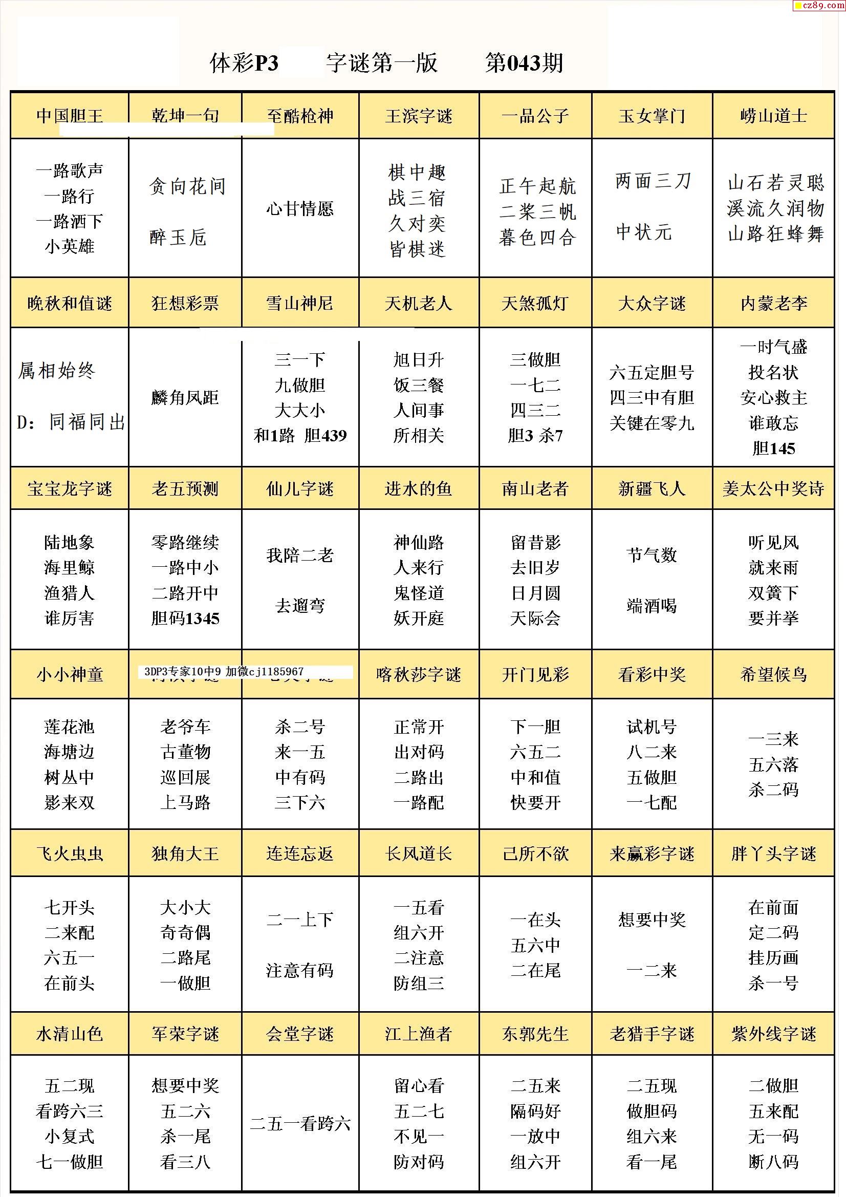 牛彩版体彩P3字谜彩报图22年043期打印版