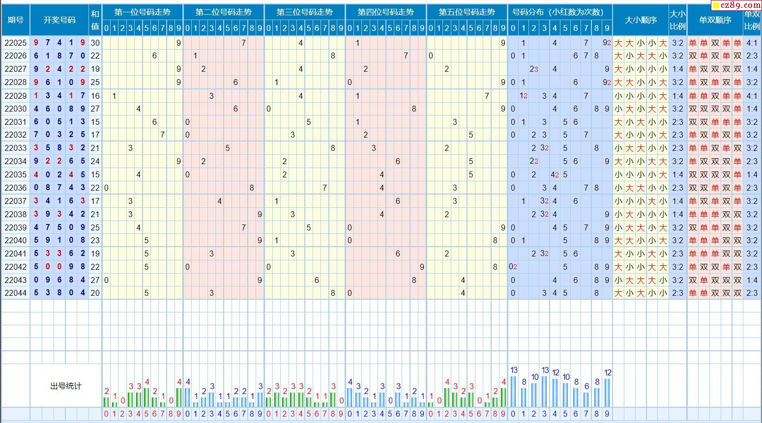 045期体彩排列5近期历史号码图表