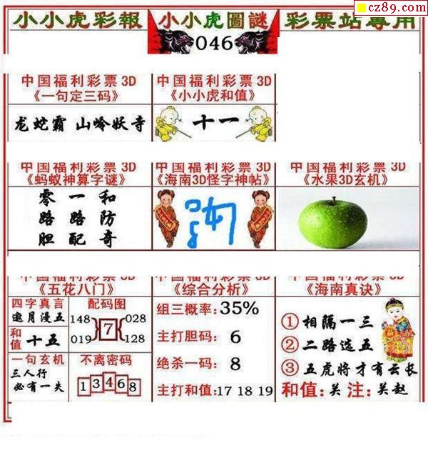 小小虎彩报2022046期3d图谜