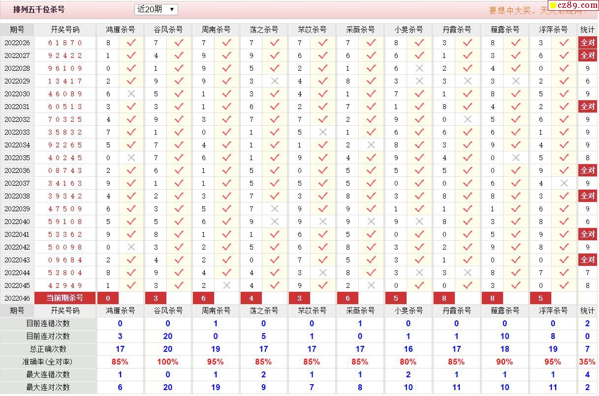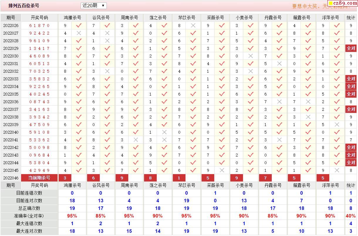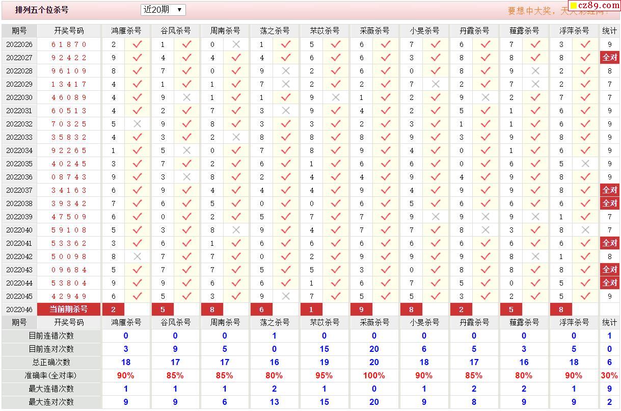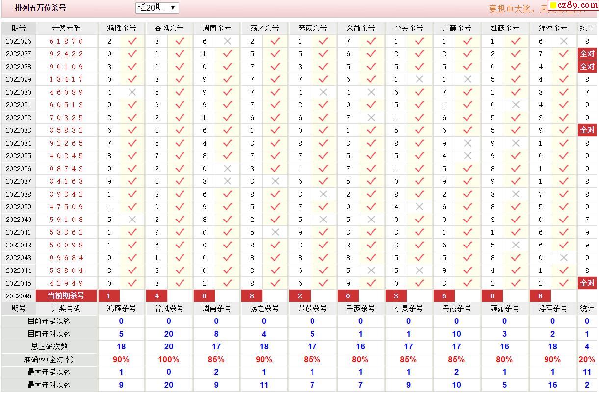 046期彩票专家体彩P5杀号推荐图表