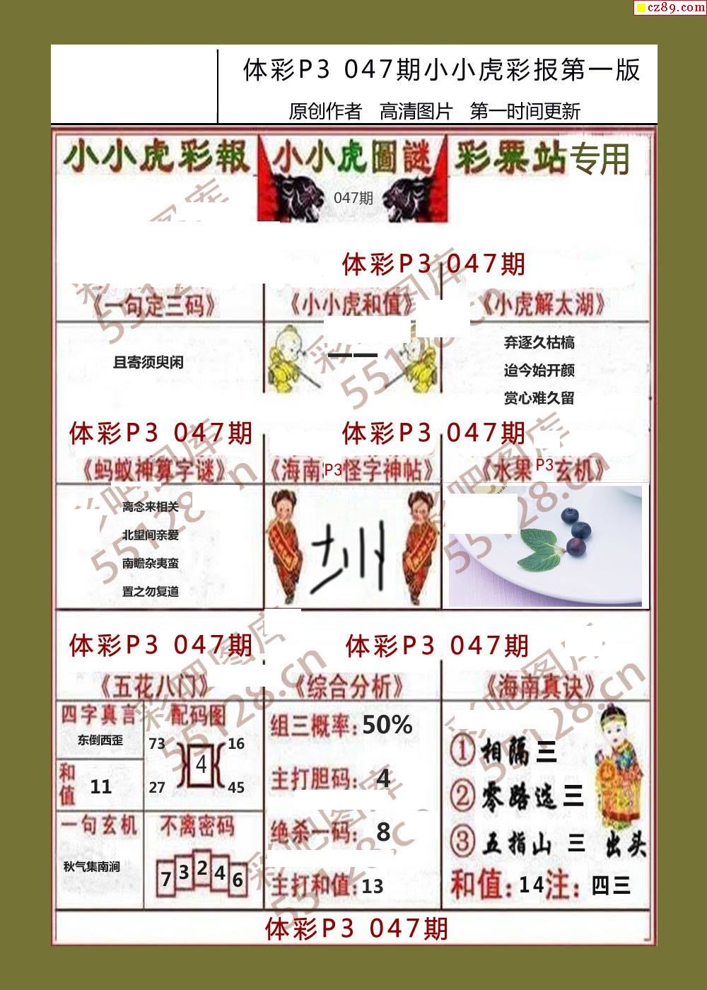 2026年007期牛彩网体彩P3画迷图谜汇总分享