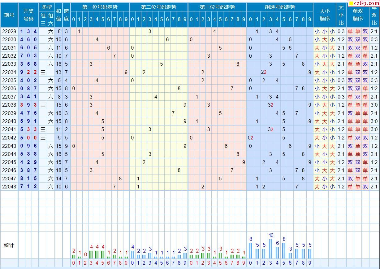 048期体彩排列3近期历史号码图表
