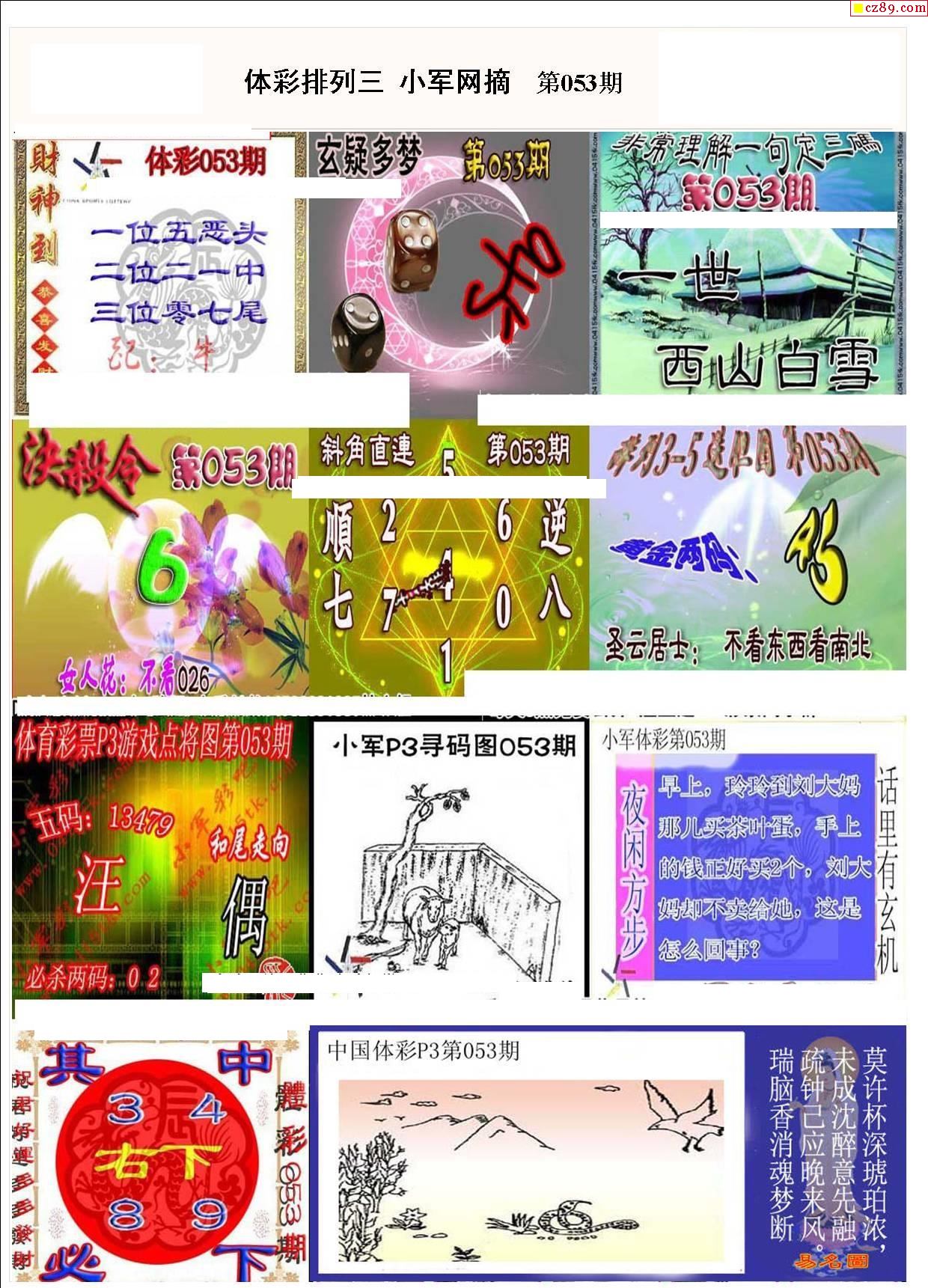 2025年327期牛彩网体彩P3画迷图谜汇总分享