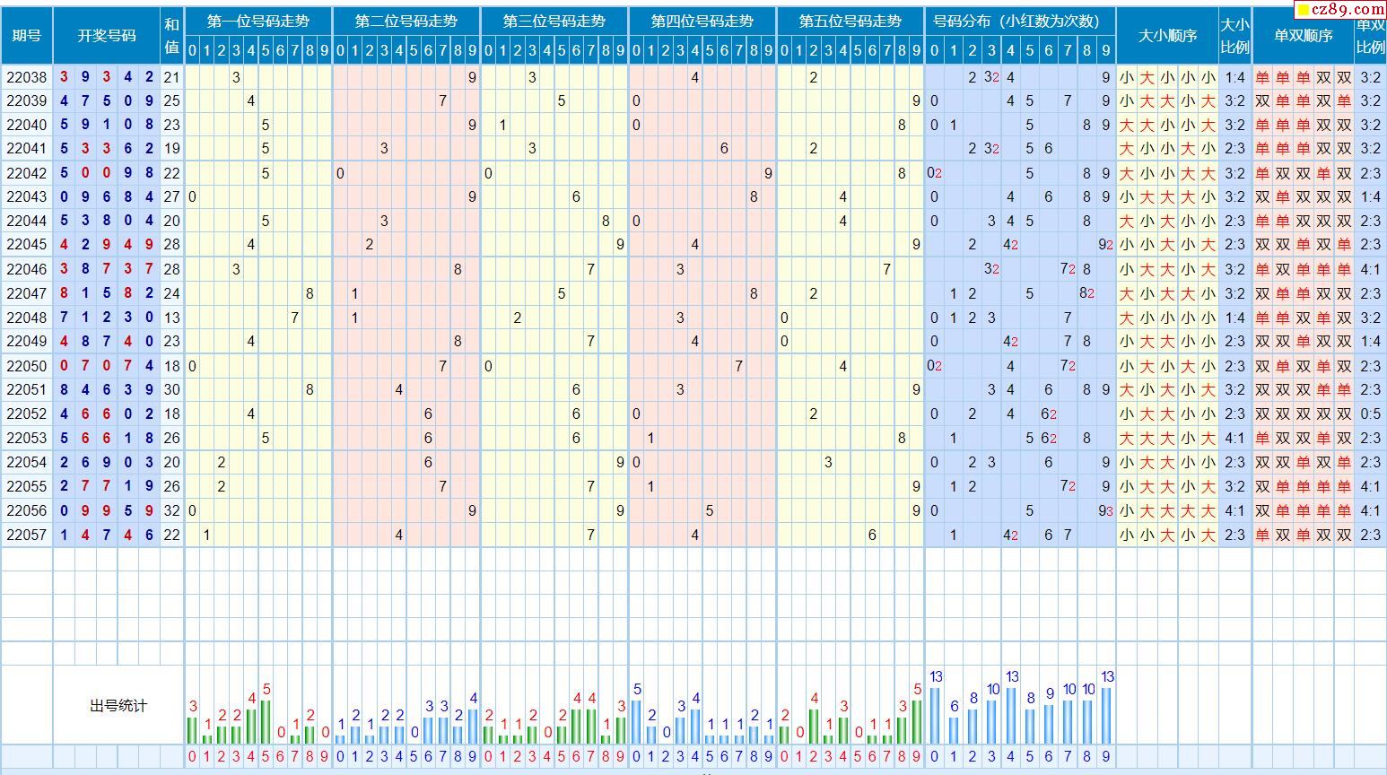 058期体彩排列5近期历史号码图表