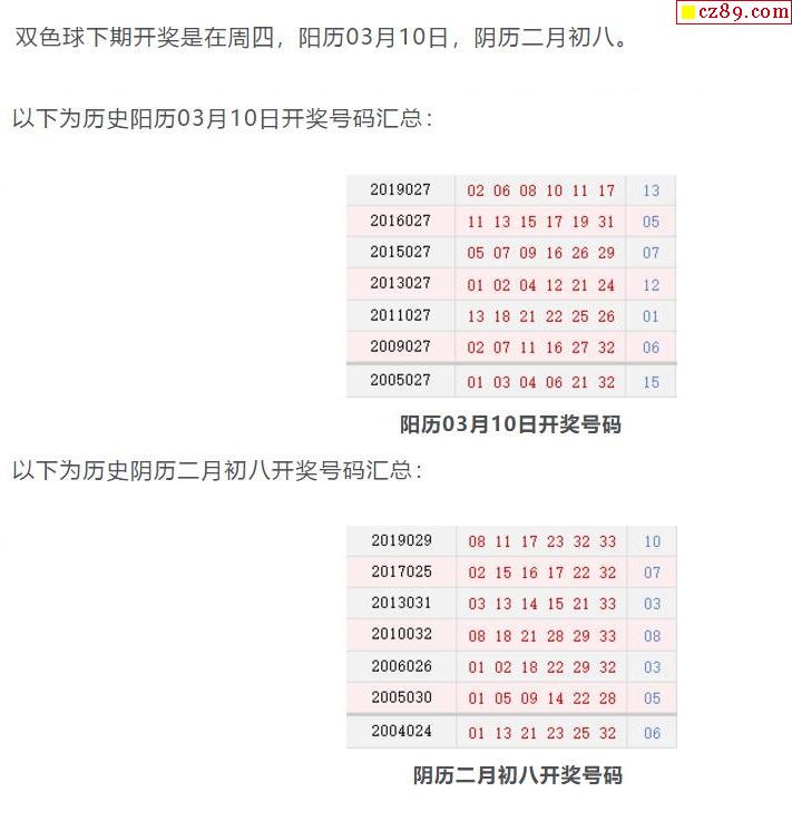 历史上的今天双色球03月10日开奖号码汇总