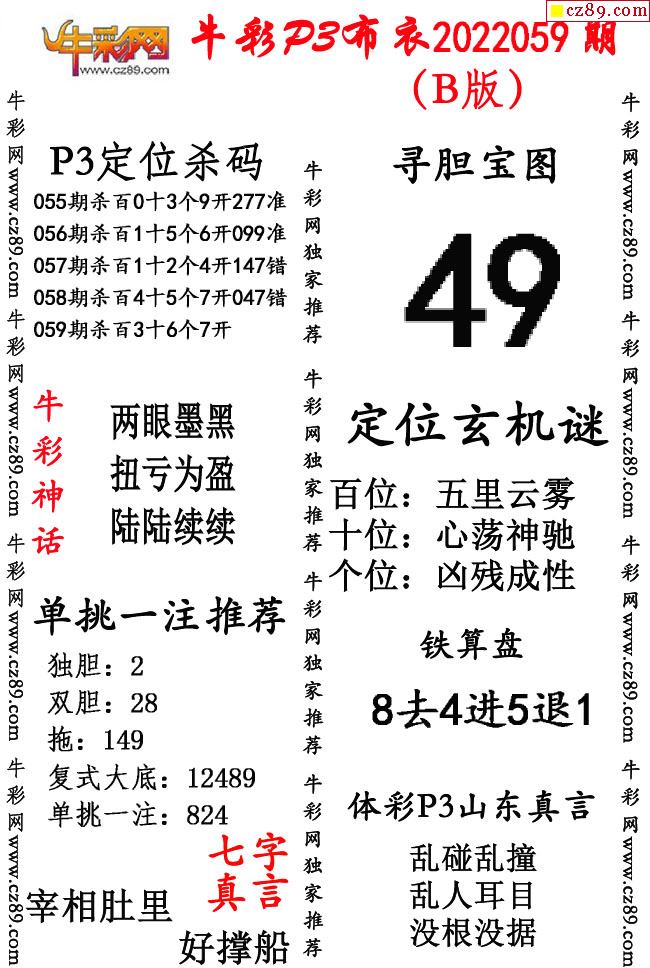 牛彩P3布衣22年059期AB版图谜(独家发布)