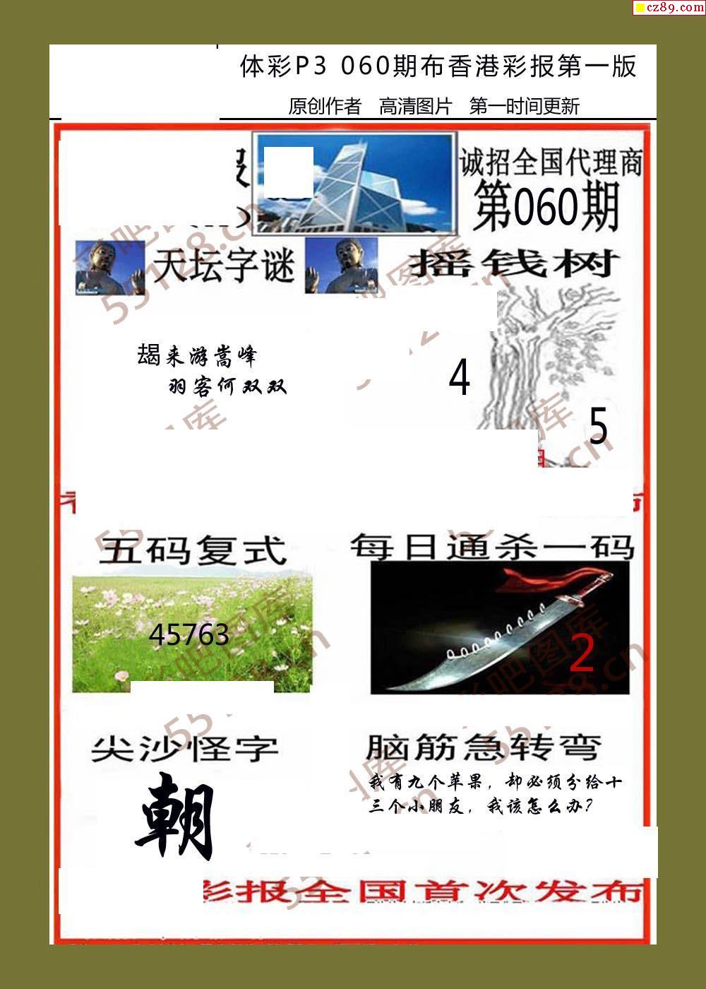 香岛彩报060期体彩p3图谜
