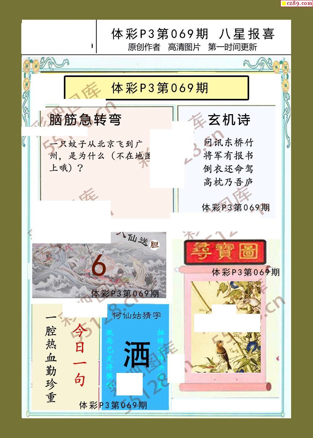 八星报喜068期体彩p3图谜
