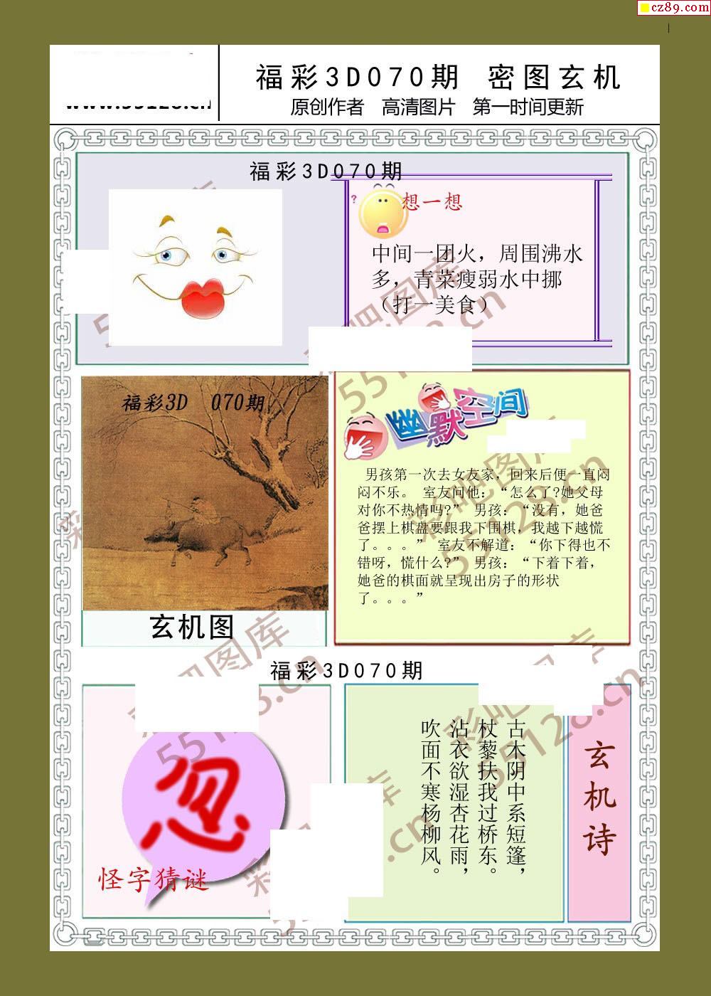 新版藏机20年070期福彩3D图谜