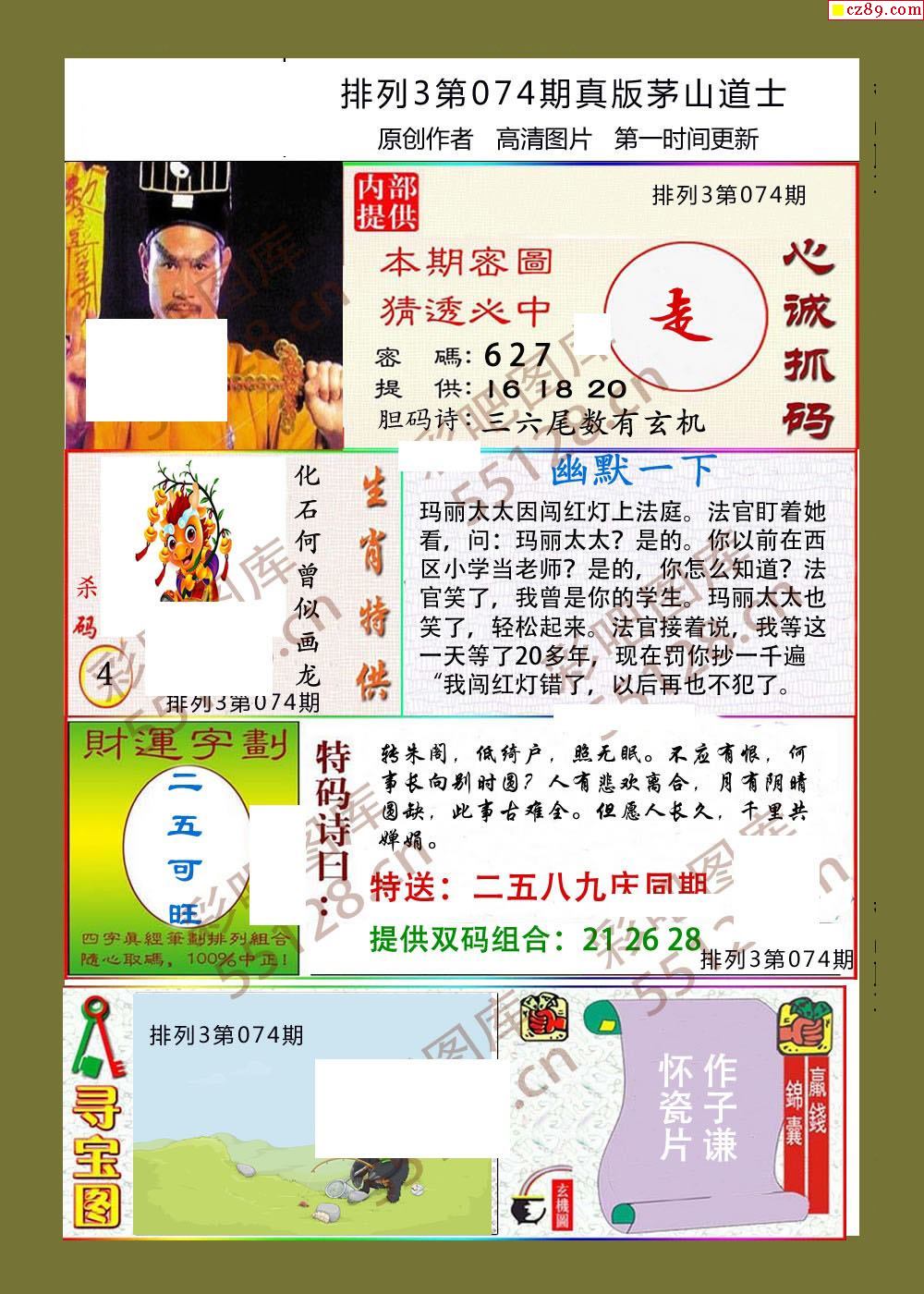 茅山道士074期体彩p3图谜