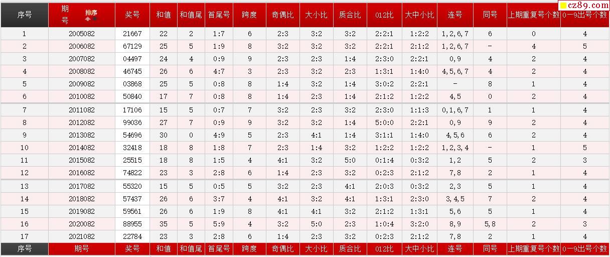 第082期体彩P5历史同期对比