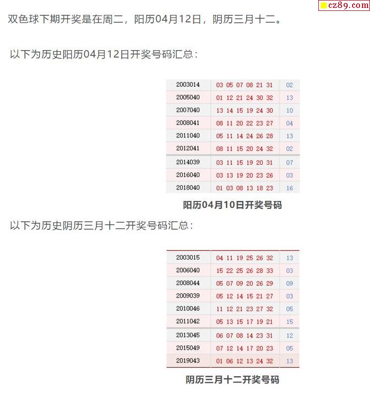 历史上的今天双色球04月12日开奖号码汇总