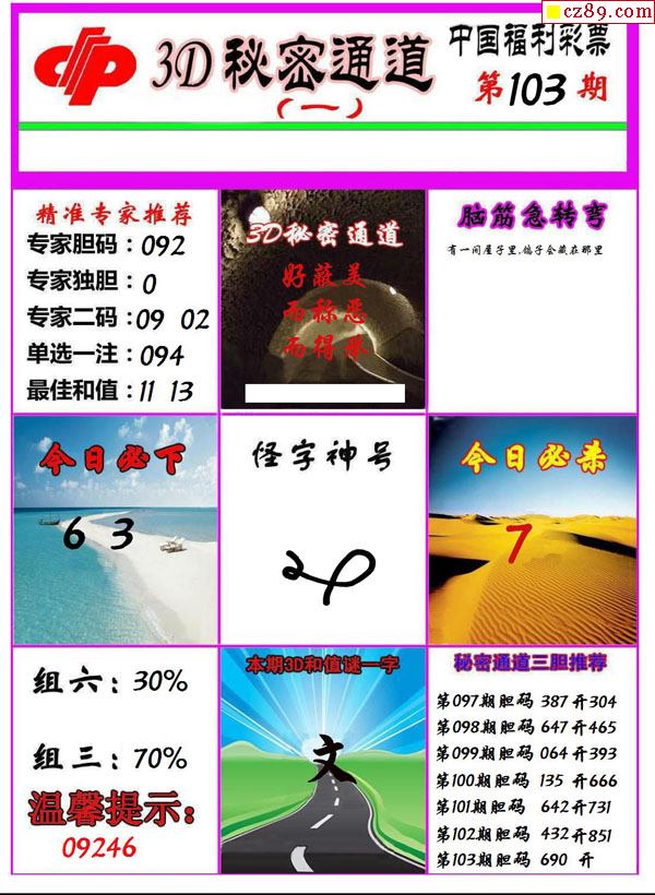 秘密通道2022103期3d图谜
