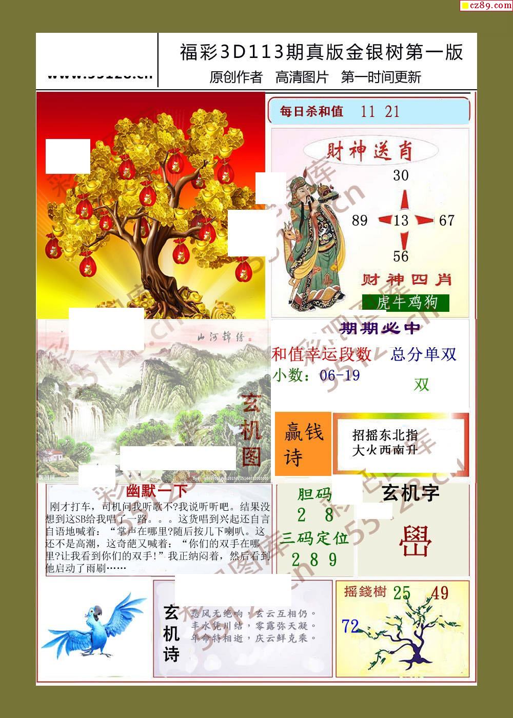 金银树22年113期福彩3d字画谜