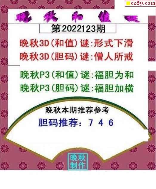 晚秋和值谜2022123期3d图谜