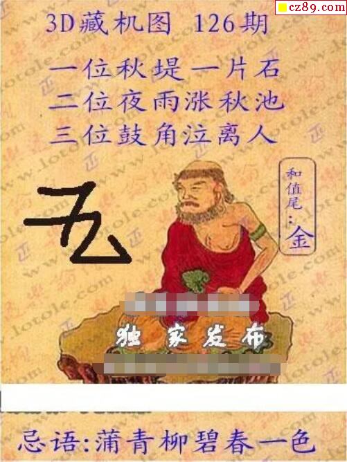 正版藏机22年126期福彩3D图谜