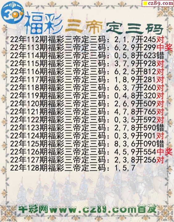 福彩三帝定三码128期3d图谜