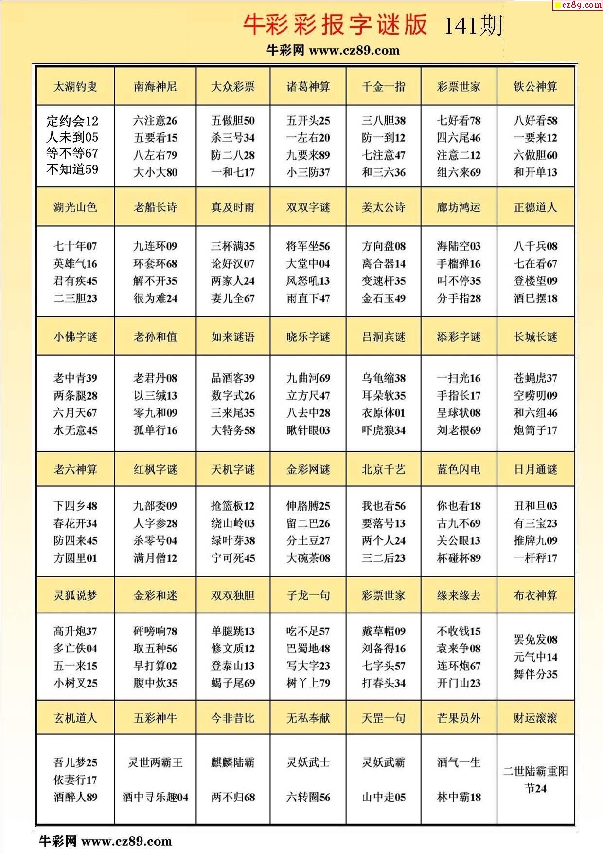 牛彩版3D字谜彩报图22年141期打印版