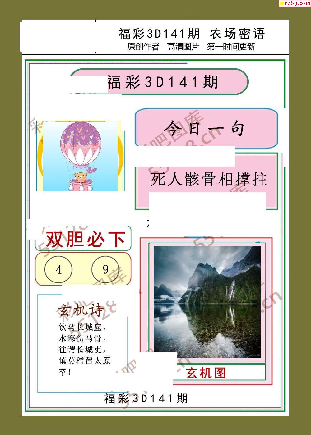 3d字迷总汇2022年141期牛彩版福彩3D今日字谜汇总