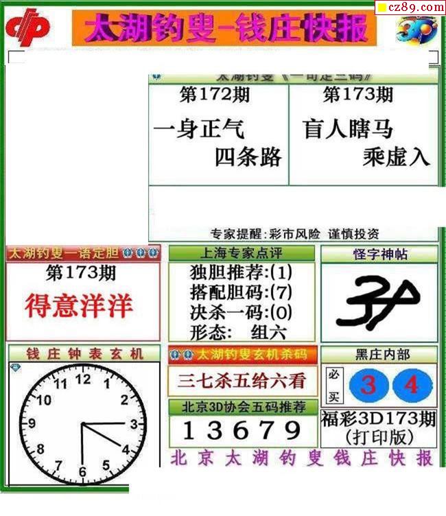 钱庄快报2022173期3d图谜