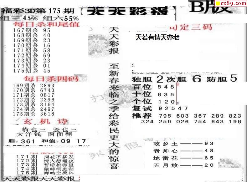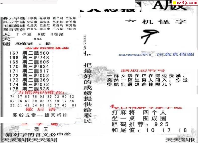 天天彩报22年175期3d画谜专区