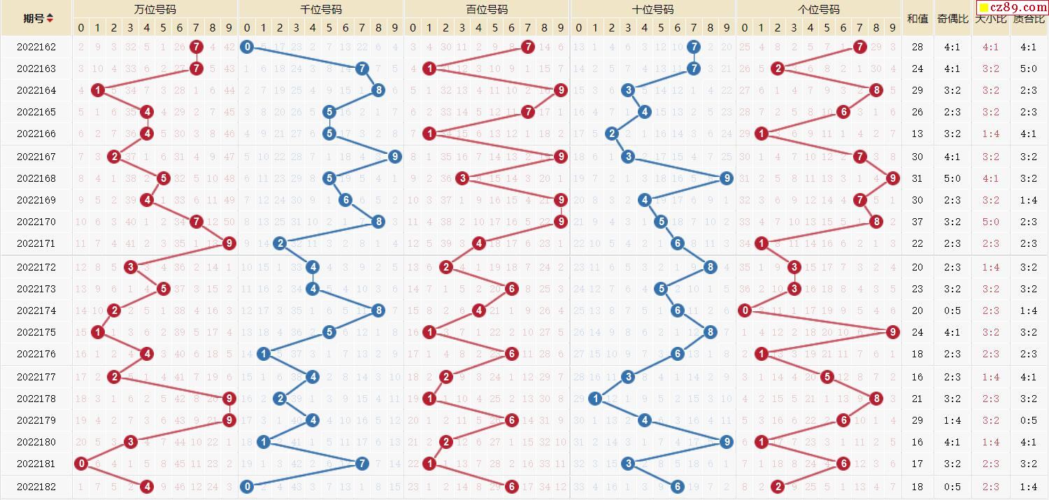 183期体彩排列5近期历史号码图表