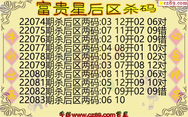 大乐透083期富贵星后区杀码图谜