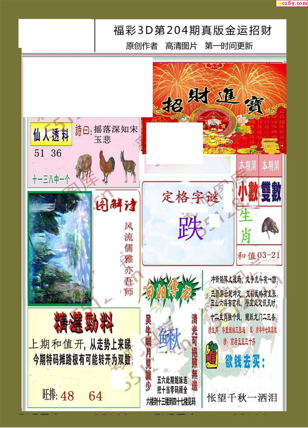 22年204期福彩3d金运招财画迷