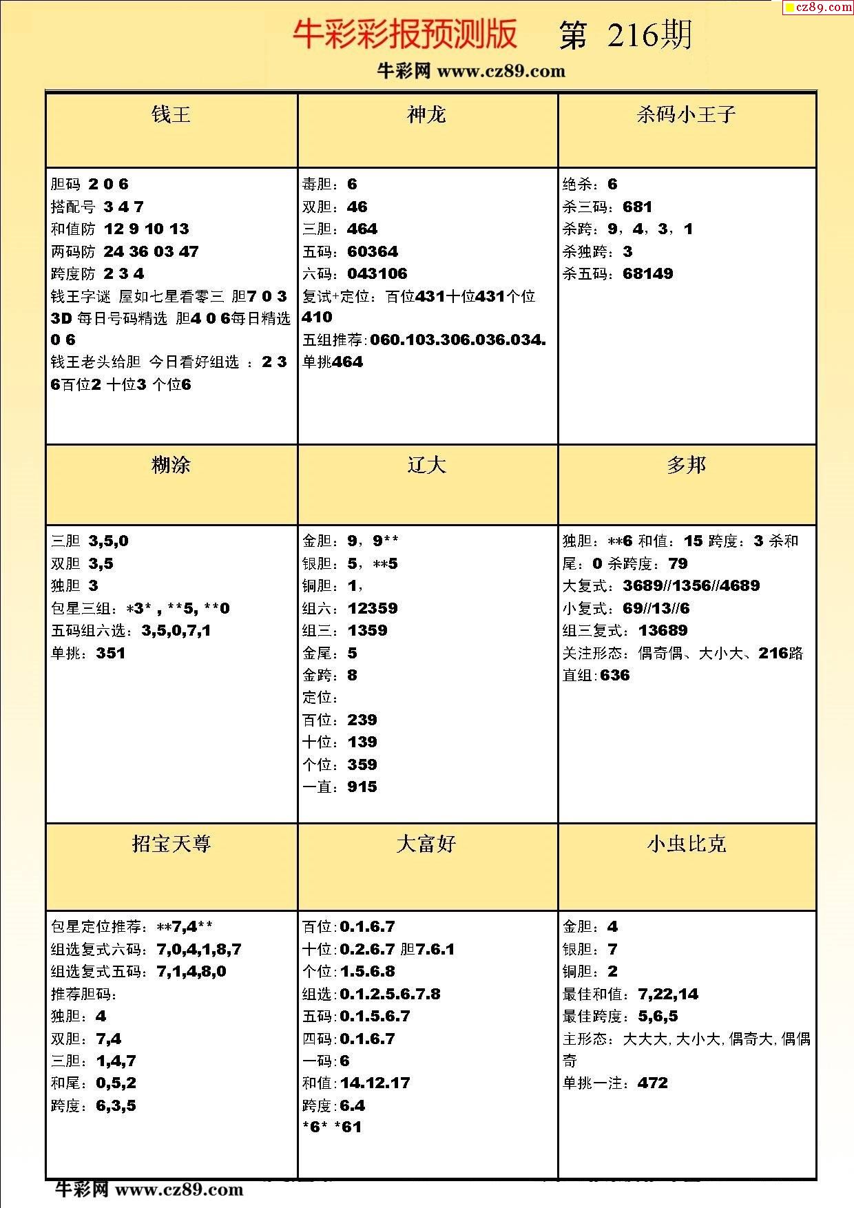 牛彩版3D预测彩报图22年216期打印版