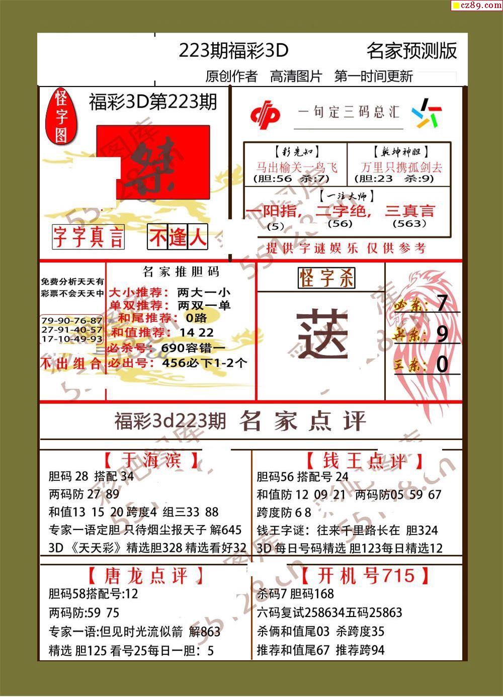 2022年223期福彩3d牛彩名家预测图谜