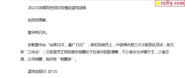 22年福彩双色球100期 白玫瑰定蓝球字谜