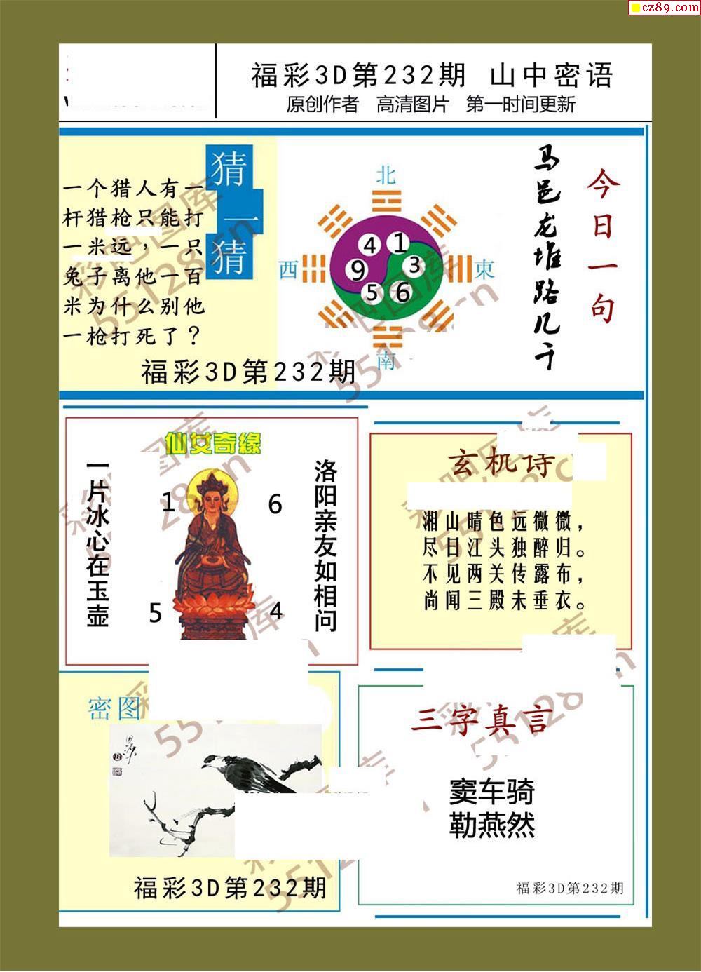 22年232期牛彩网福彩3D字谜汇总大全【晚间版】