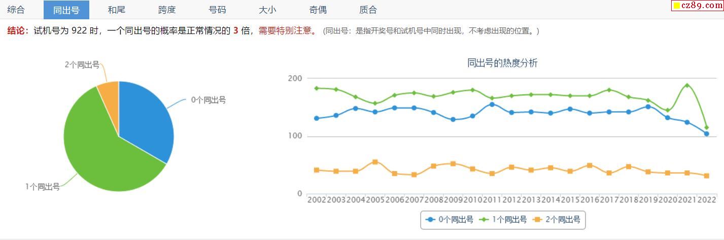 228期福彩3D试机号922对应开奖号的组选分析结果