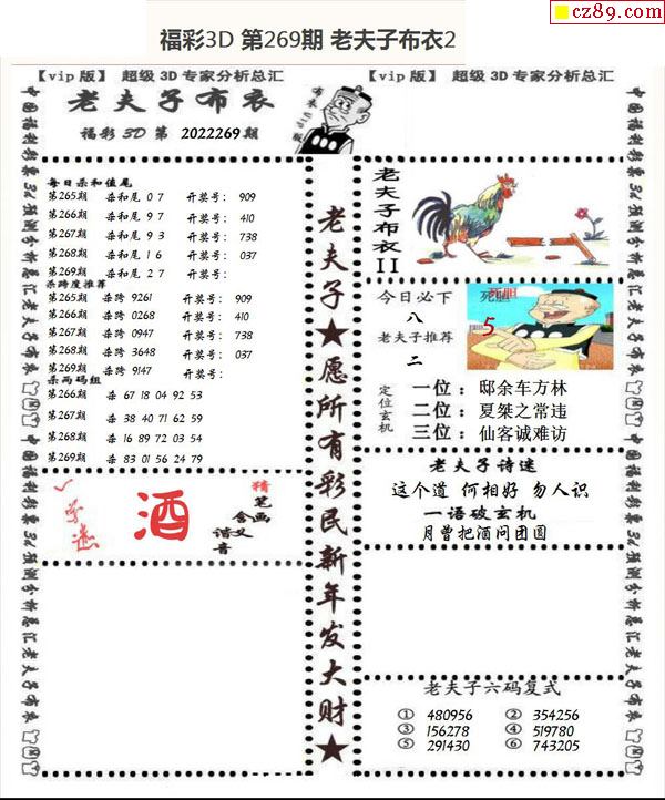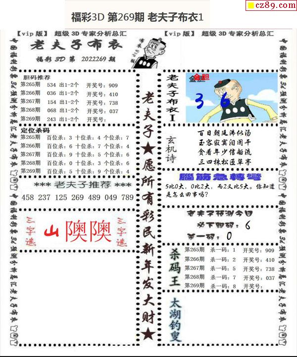 老夫子布衣2022269期3d图谜