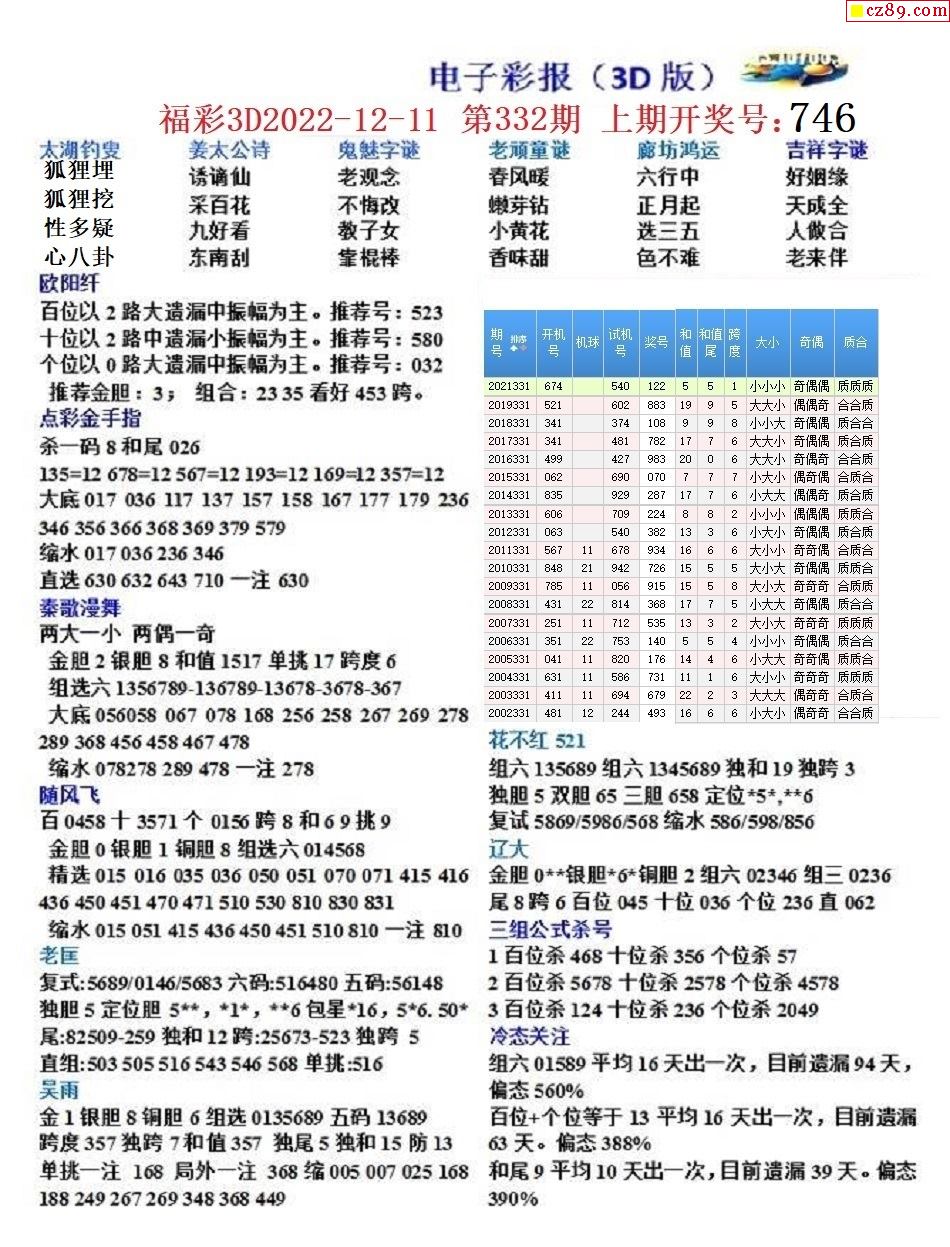 2022332期3D图谜汇总(一)