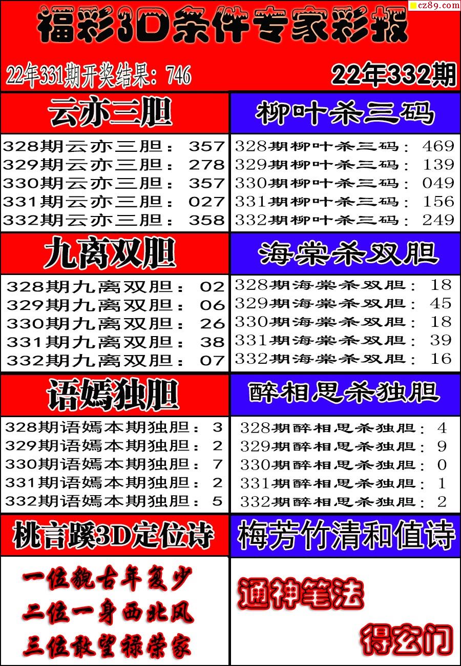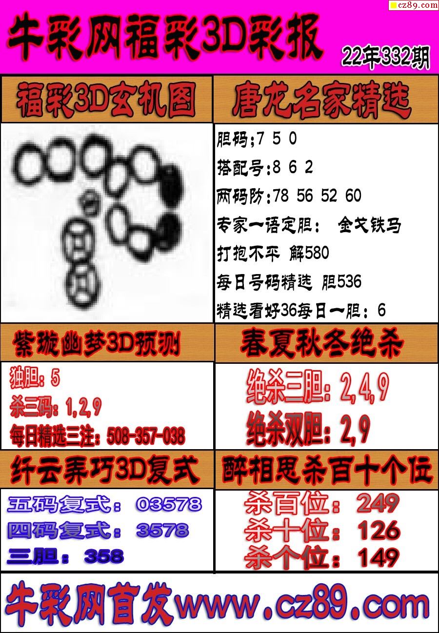 22年332期福彩3D彩票指南【牛彩版】